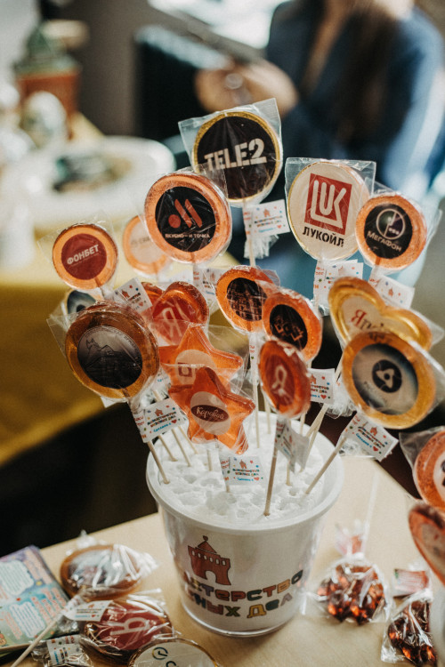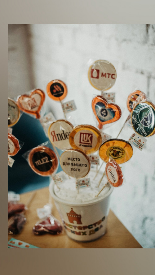 Леденцы на палочке с логотипом оставят приятное впечатление о Вашей компании и запомнятся как приятные и вкусные корпоративные подарки.